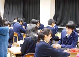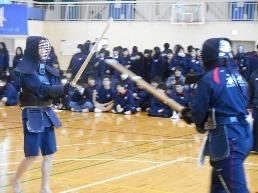 3月2日、1年男子体育で行っている剣道の授業で、クラス対抗戦を行いました。女子の応援の中、熱戦が繰り広げられました。