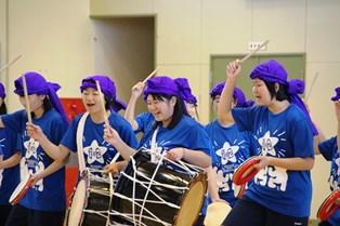 11月17日、1年女子体育の時間、各クラス毎に取り組んだエイサーの発表会を行いました。