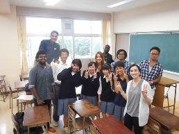 9月5日、宮城復興支援センターより7名の留学生が来校し、1年の各クラス毎に交流しました。エジプト、アルジェリア、カナダ、ヨルダン、ナイジェリア、ロシア、スリランカと多彩な国の文化を紹介いただき、様々な視点や価値観に触れることができました。