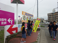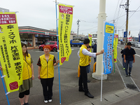 7月12日(木)午前8時05分から8時35分までの30分間,本校入口付近と4号線バイパスとの交差点付近で,本校交通安全委員の生徒が街頭交通指導を行い交通安全とマナーについて全校生徒に呼びかけました。当日はPTA役員の皆様にもご協力いただき一緒に活動していただきました。ありがとうございました。