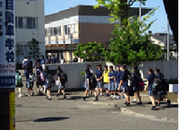 8月23日(木)夏休みが終わり,前期の後半がスタートし,生徒は元気に登校してきてくれました。校門であいさつ運動や交通安全運動を行い,登校してくる生徒を出迎えました。