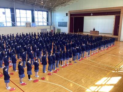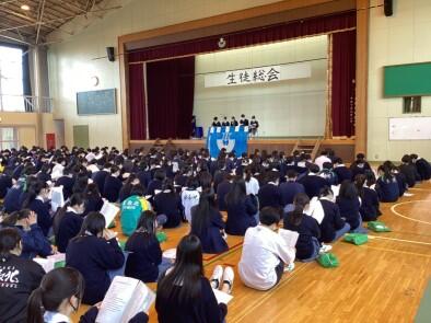 コロナウイルスやインフルエンザ等、予断を許しませんが、全校生徒が一堂に会しての集会ができました。