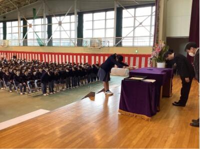式に先立ち、各種大会等で活躍した生徒の表彰を行い、互いの功績をたたえ合いました。